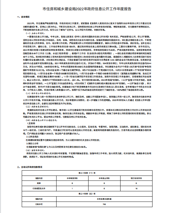 市住房和城乡建设局2022年政府信息公开⼯作年度报告